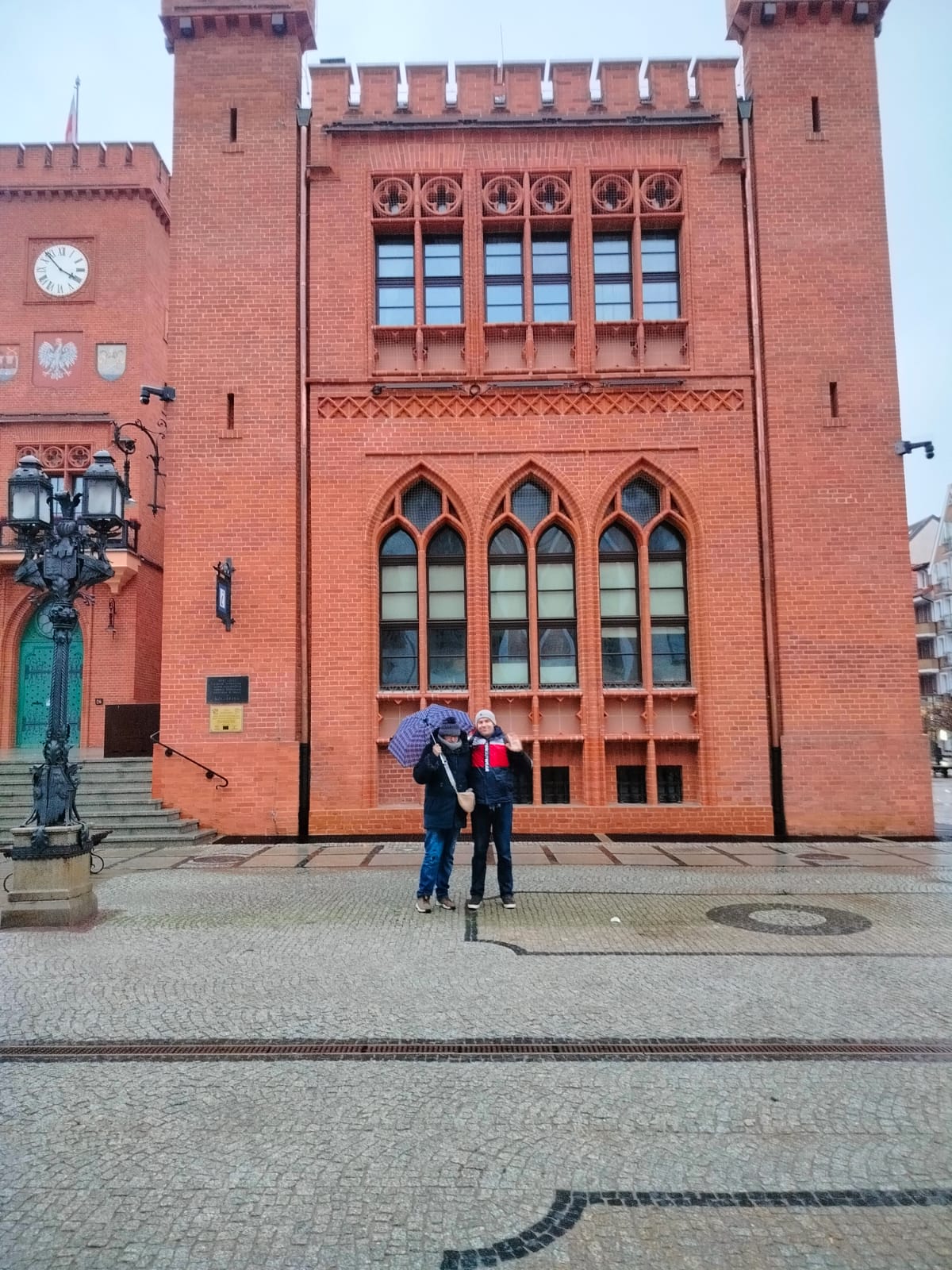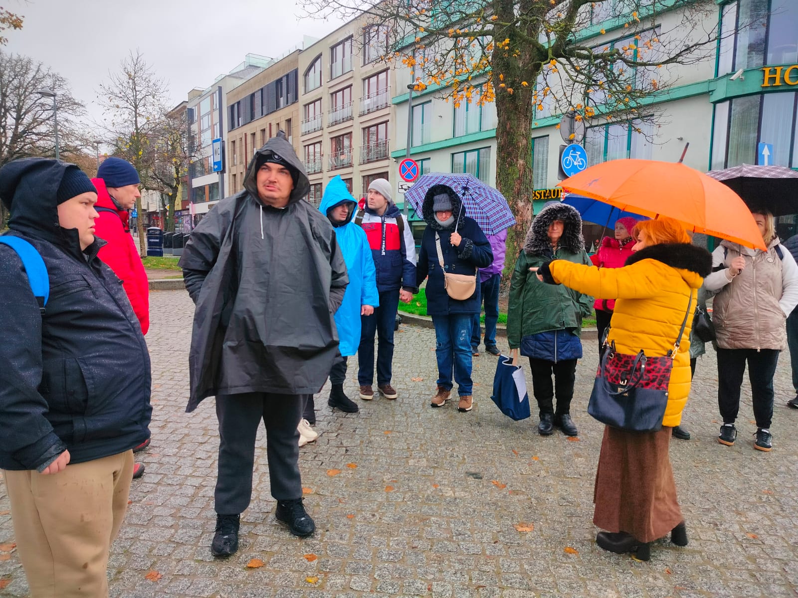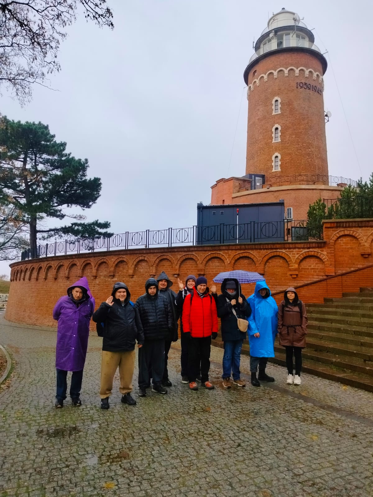 Pogoda niestety nie sprzyjała długim spacerom, ale nawet przelotnie udało się zobaczyć kilka najważniejszych miejsc: fragment nadmorskiej promenady, okolice portu oraz molo tonące w deszczowej mgle. To był raczej rekonesans niż zwiedzanie, ale wszyscy potraktowali wyprawę z dużym poczuciem humoru.